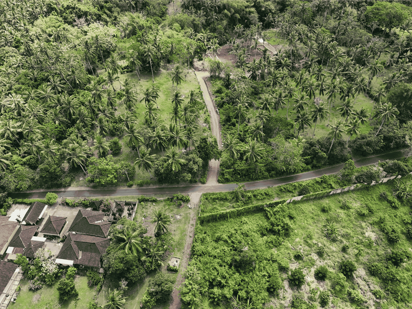 Slightly inland and higher than its neighboring plots, Plot W2 enjoys expansive views across the valley toward the ocean. Its elevated setting ensures more privacy and a sweeping perspective, while still being only minutes away from the surf at Pantai Soan Galuh and Pantai Bonian.